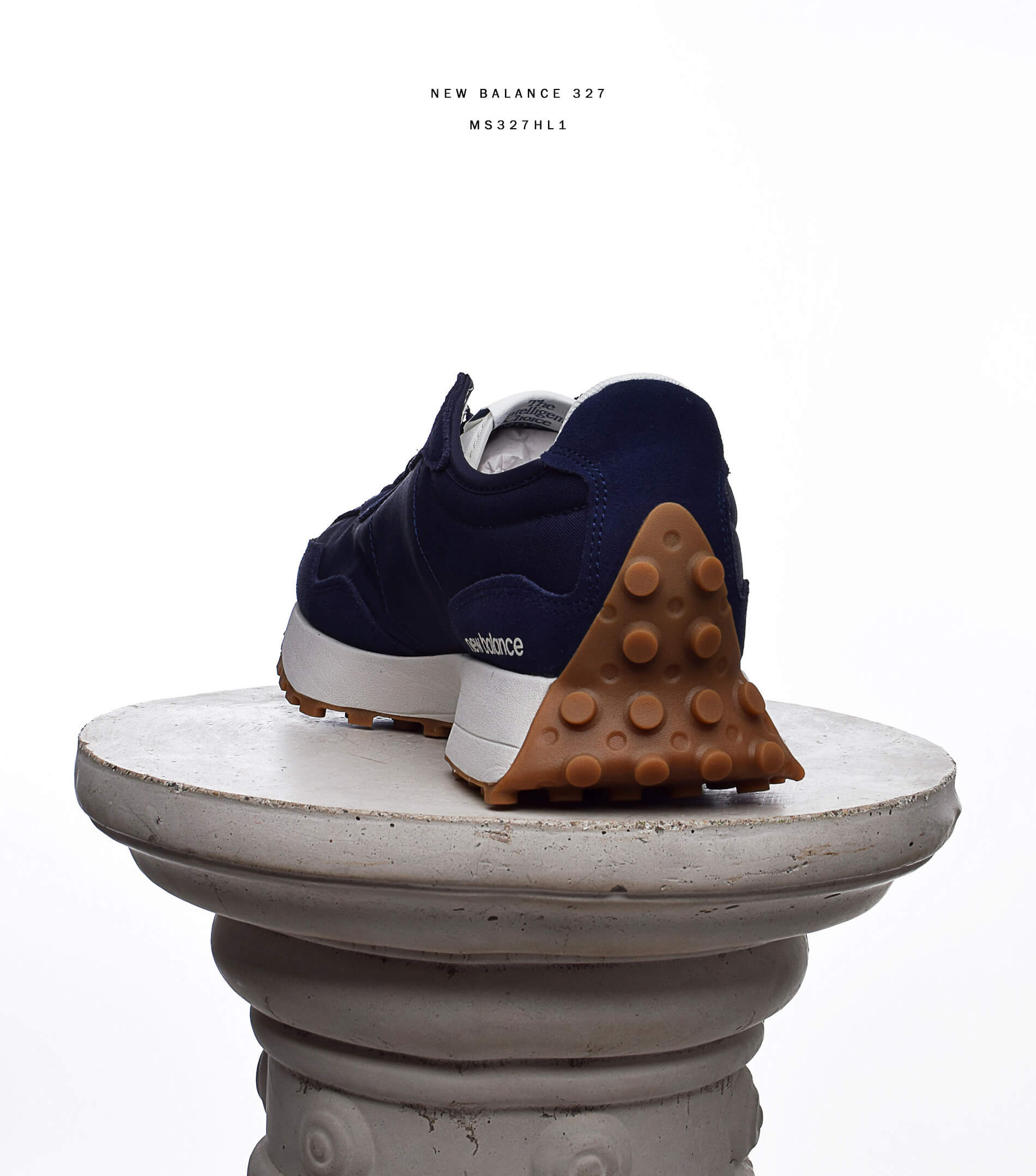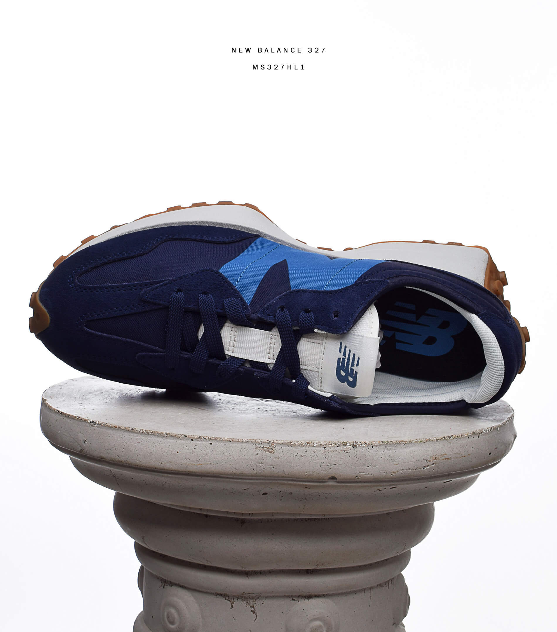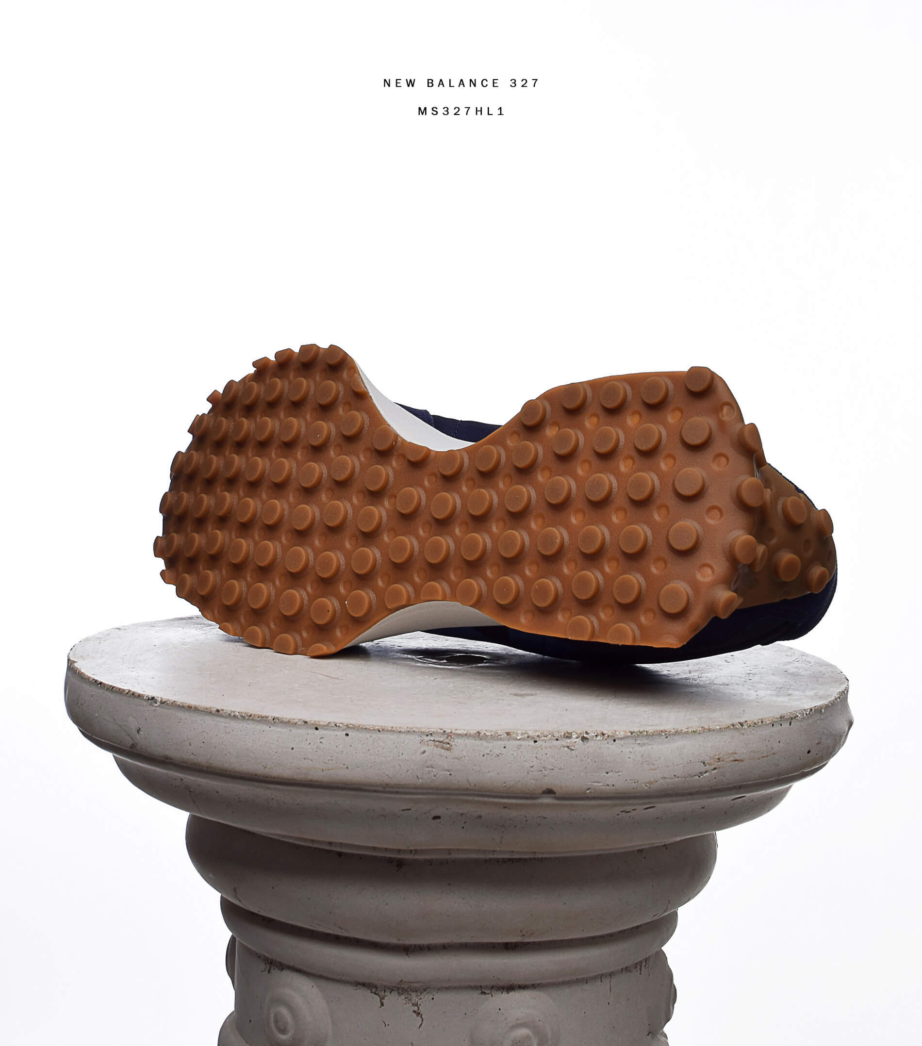 Iš savo protėvių NB 320 ir Super Comp naujieji NB 327 paveldėjo asimetrišką, išlenktą vidurio pado siluetą, tinklelio medžiagą ir visą apgaubiantį dygliuotą guminį padą, kuris akylam pirkėjui gali asocijuotis su futbolo bucais. Vaizduotės interpretacijos čia išties atviros.
