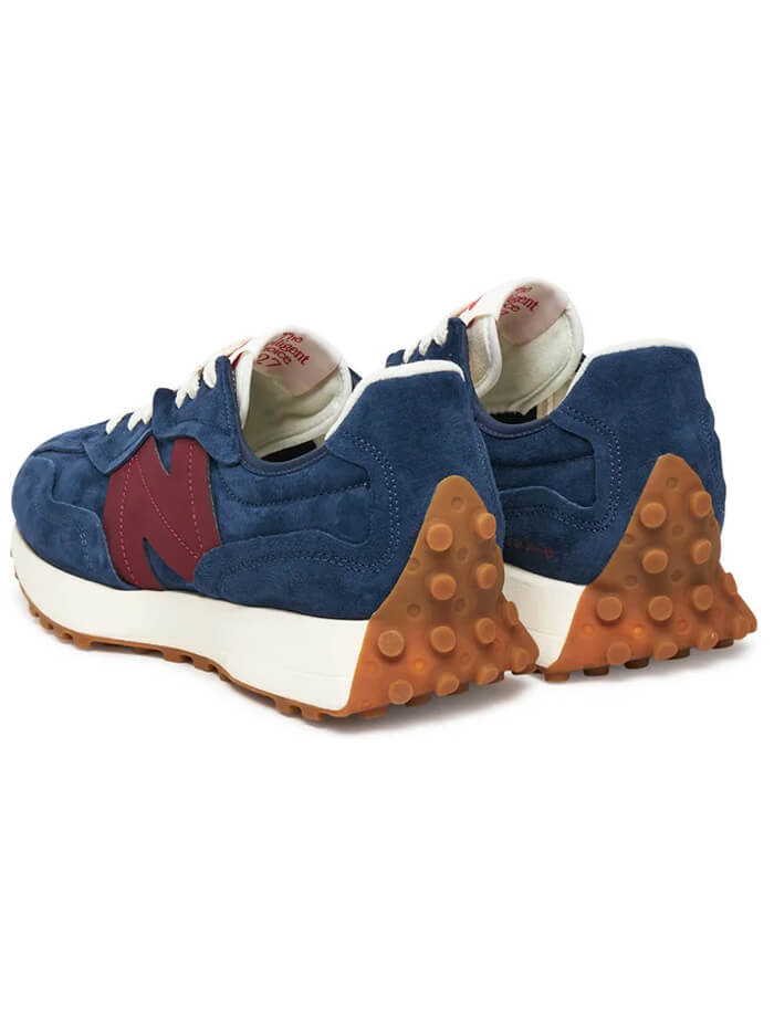 Iš savo protėvių NB 320 ir Super Comp naujieji NB 327 paveldėjo asimetrišką, išlenktą vidurio pado siluetą, tinklelio medžiagą ir visą apgaubiantį dygliuotą guminį padą, kuris akylam pirkėjui gali asocijuotis su futbolo bucais. Vaizduotės interpretacijos čia išties atviros.